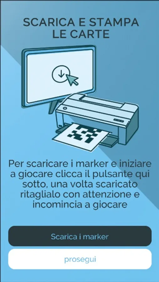 • scarica il file pdf che contiene i marker ovvero le carte per giocare, ritagliale e disponile su un tavolo;