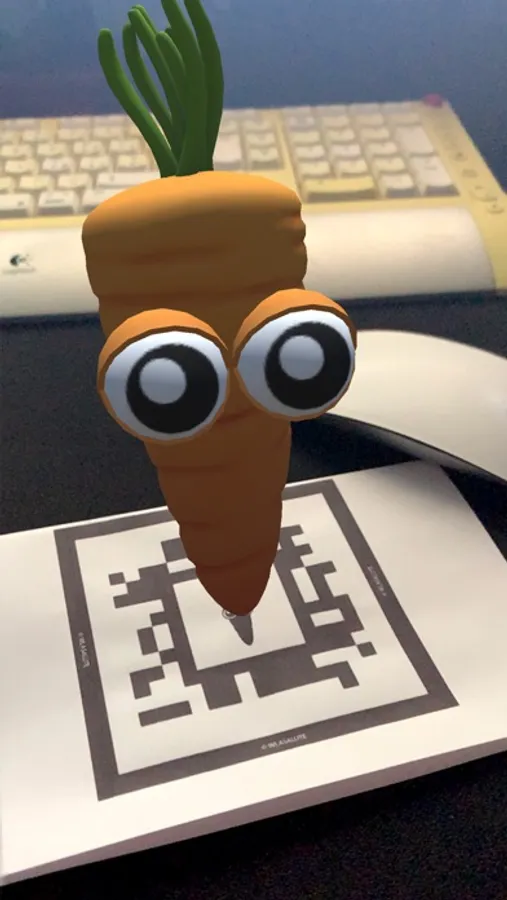 • ora con lo smartphone o con il tablet inquadra le carte con i simboli delle verdure: sulla carta vedrai apparire la verdura che hai scelto e che puoi muovere se sposti la carta o avvicinarla o vederla da angolazioni diverse se muovi lo smartphone o il tablet. Se fai TAP sullo schermo, puoi ascoltare cosa la verdura ha da dirti;