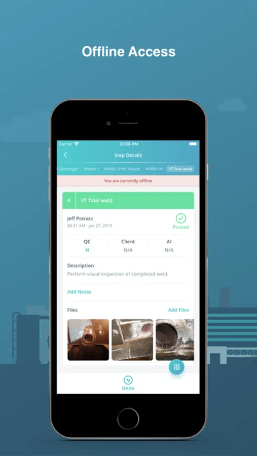 Complete inspections on any device, even when you’re offline. Create test plans, and assign inspections. View up to date progress tracking in real-time.