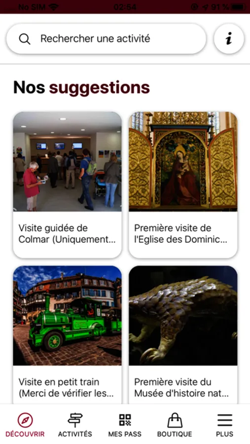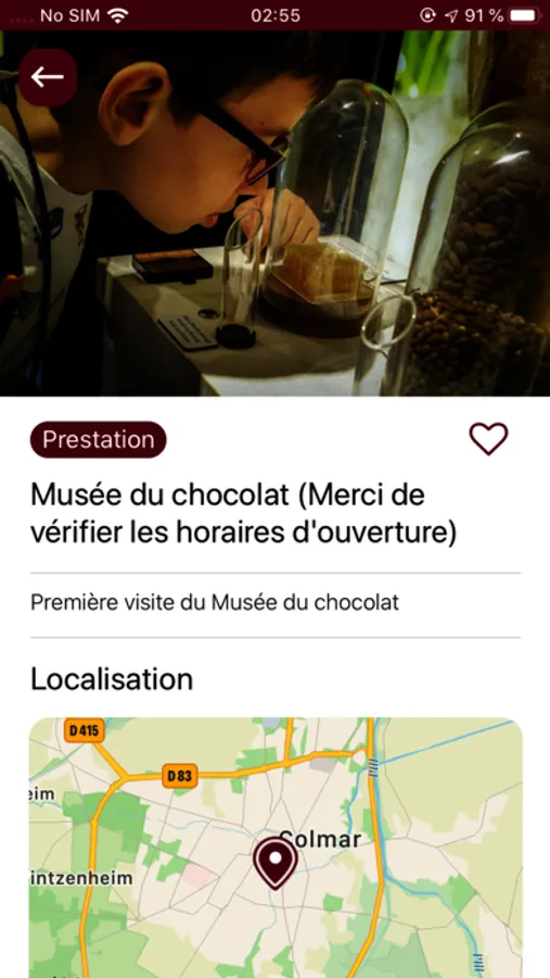 L’application Otipass Colmar permet à son utilisateur de consulter la liste des sites partenaires du Colmar City Pass même sans connexion internet, et pour chacun d’eux d’obtenir des informations détaillées : Nom, Photo(s), description, adresse postale, localisation sur la carte Google Maps, horaires, lien site internet, téléphone, contact, événements liés, prestataires aux alentours. Ainsi il dispose d’un guide touristique numérique interactif pour l’accompagner pendant son séjour à Colmar.