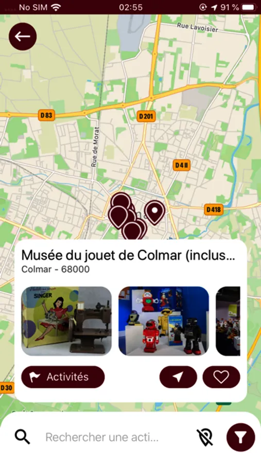 Si l’utilisateur autorise sa géolocalisation, l’application lui indique les sites touristiques à proximité et le guide vers ces sites en utilisant l’API Google Maps.