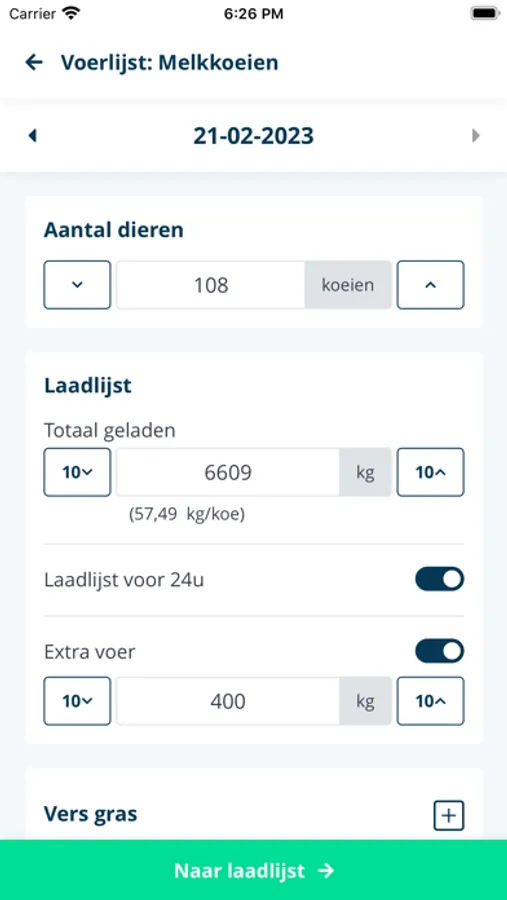 Daarnaast zit in de app ook een handige assistent voor het laden van de mengwagen.