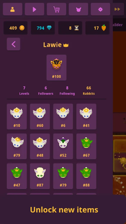 • Unlock new items