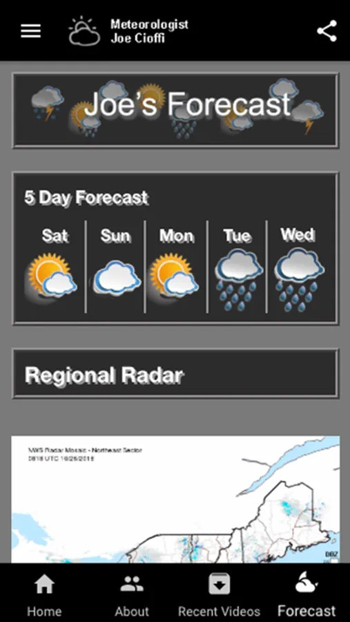 Emmy award winner Meteorologist Joe Cioffi's on the go weather app with forecasts and weather model analysis. Get forecasts for your zip code, current local weather conditions, zoom Radar, winter snow accumulation forecast maps for all of the US East Coast.