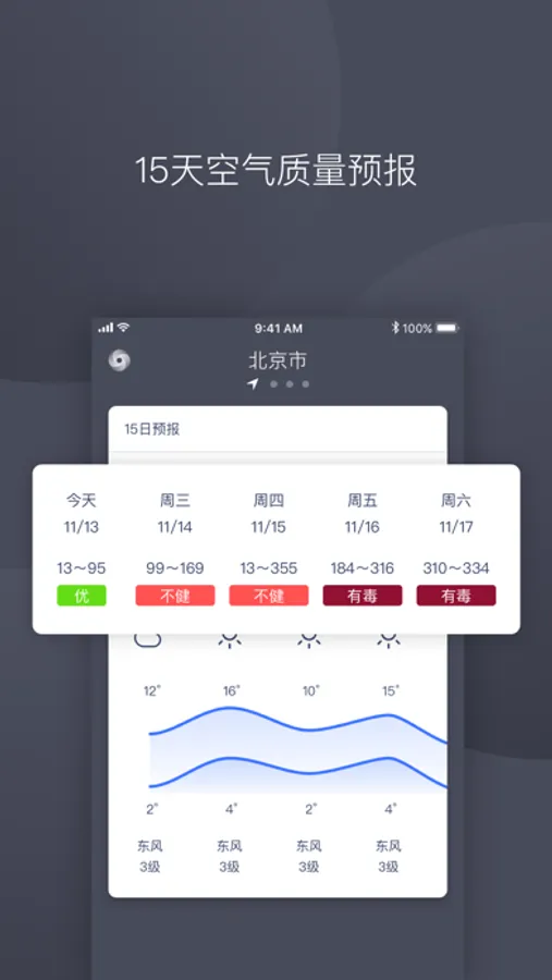 1.长达15天预测,专业全面的空气数据