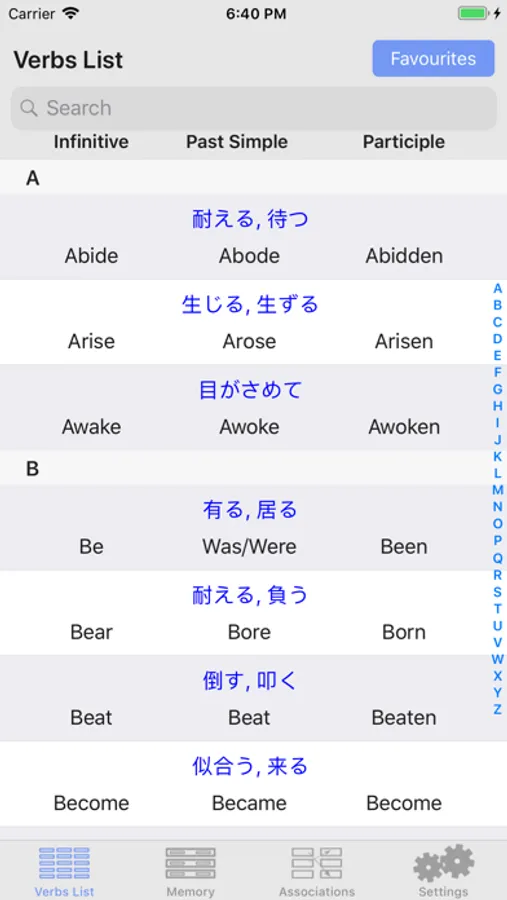 iVerbs - 英語の不規則な動詞 - クイック検索と英語の不規則な動詞を表示するアプリ。