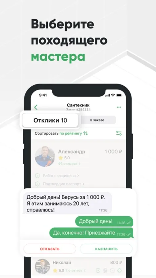 Все отзывы и оценки мастеров проходят тщательную проверку — мы просим исполнителей пройти проверку документов, указать важную информацию о себе, пройти тестирование своих профессиональных навыков, добавить в анкету фото с примерами работ, вычисляем мошенников и удаляем всех, кто нарушает правила.