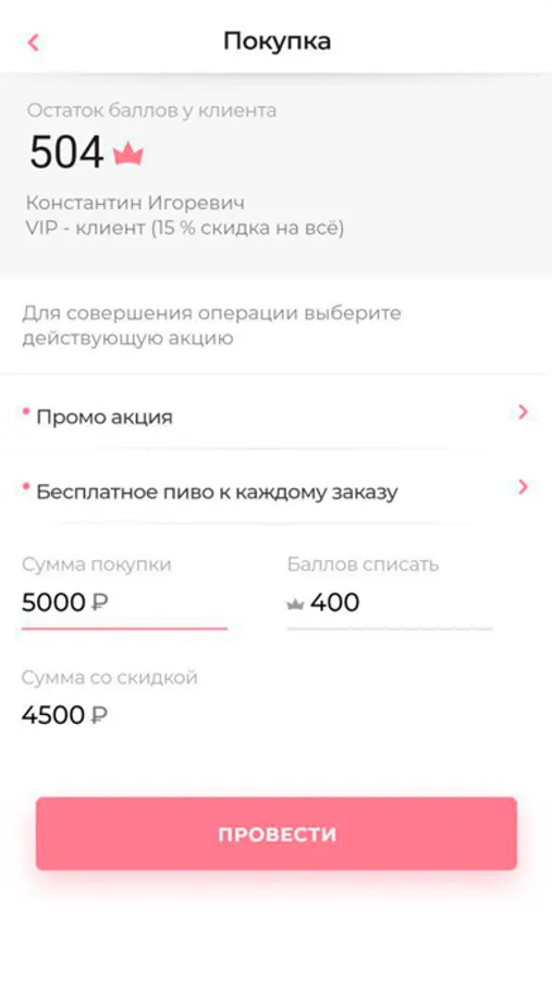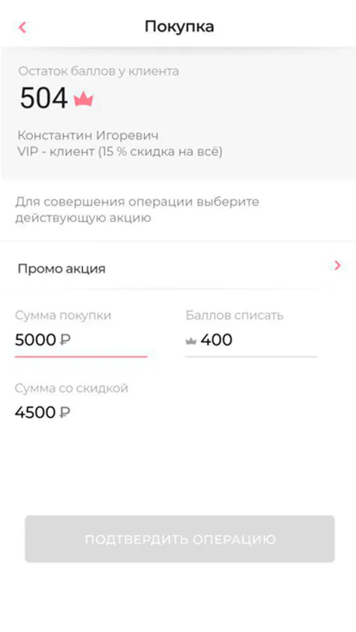 Мобильное приложение-Business представляет собой платформу для проведения операций кассиром.