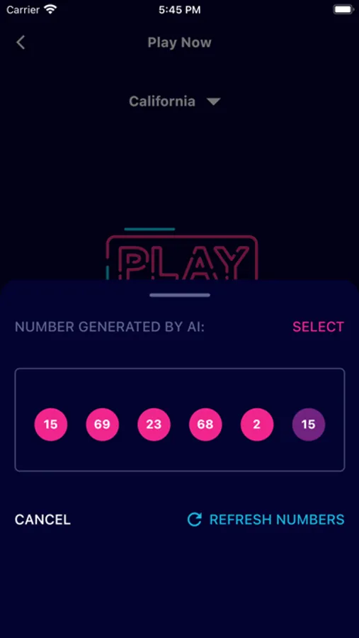 Simply pick between Powerball & Megamillion and select your state. The app will then generate the lotto numbers. You can easily copy them by tapping “select”. You can generate numbers without limits by tapping refresh numbers.