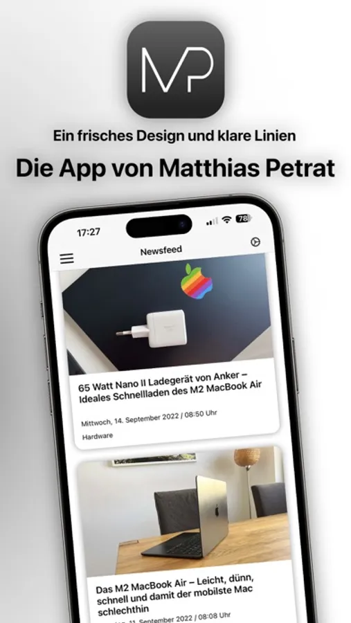 Mit der offiziellen App von Matthias Petrat verpasst du keine neuen Inhalte mehr. Erhalte einen Push, wenn ein neuer Beitrag erscheint und durchstöbere das gesamte Blog-Archiv über die Suche oder die angelegten Kategorien. Favorisiere dir Artikel auf Wunsch und genieße die Inhalte auf deinem iPhone und/oder iPad.
