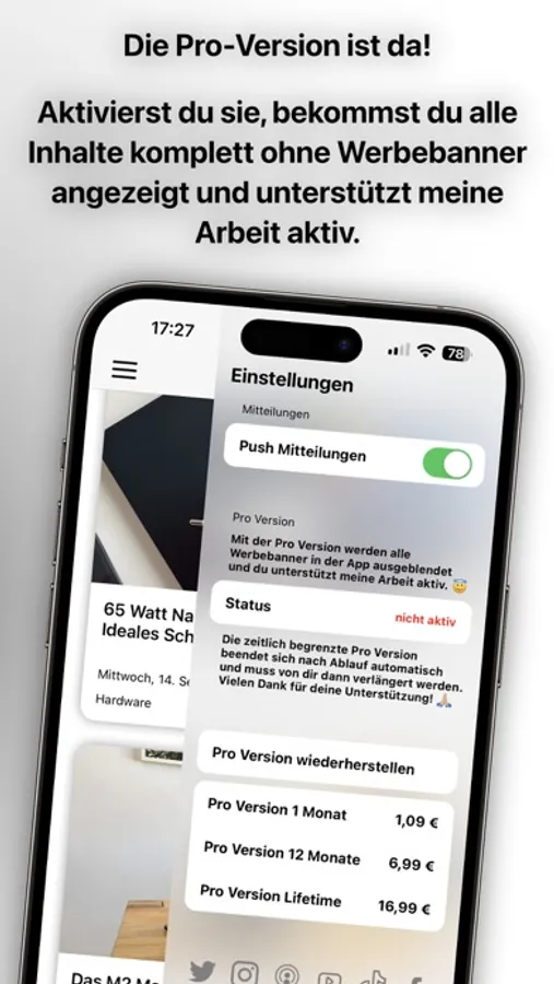- Unterstütze die Arbeit über die Pro-Version und die Kaffeekasse
