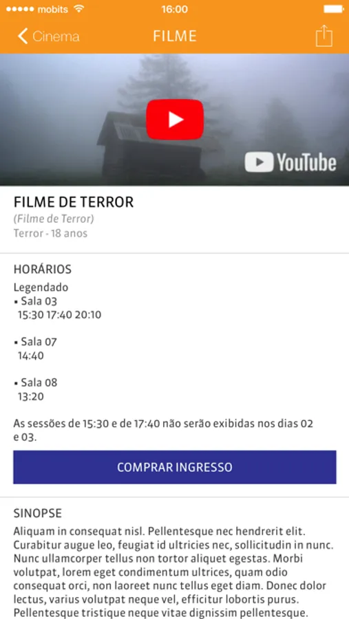 - Programação do cinema