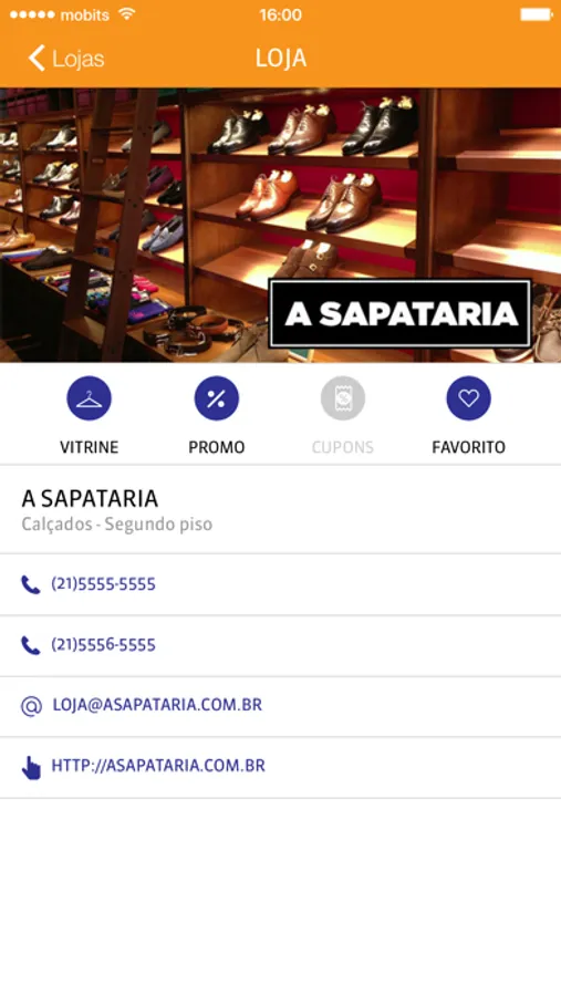 - Informações do shopping (contatos, endereço e horários de funcionamento)