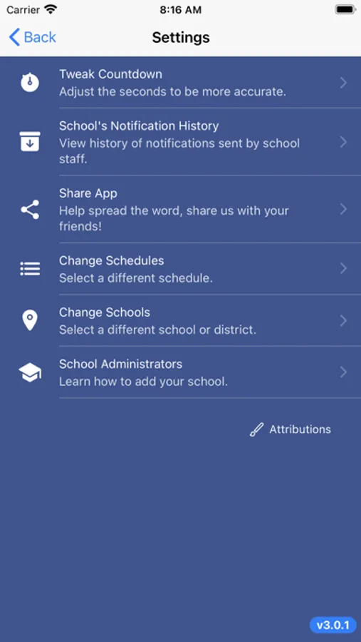 *Schools are added by school administration's request. Your school may not be on the list. If so, contact us through the app or on our website: bellschedule.app