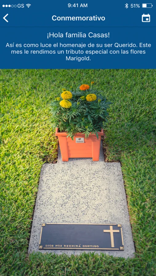 - Recibir una notificación y fotografía cuando realicemos el mantenimiento de placas, cambio de flores, colocación de homenajes en fechas especiales, entre otras actividades que se realicen en su propiedad.
