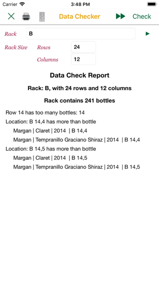 Flexible functions allow you to add individual bottles, add multiple bottles of the same wine in a single action, move bottles, open bottles, set up your racks or locations to match your physical storage/s, search by many options, sort a search result to suit and do data checks to review the integrity of your cellar.