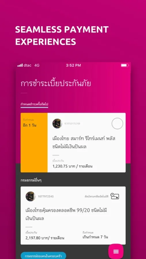 สามารถขอเข้าถึงกรมธรรม์ของสมาชิกในครอบครัว และชำระเบี้ยประกันภัยให้กันได้