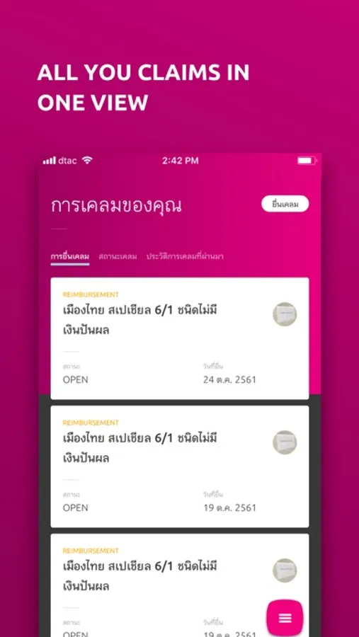 ติดตามและแจ้งเตือนสถานะการเคลมสินไหม