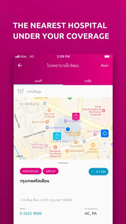 ค้นหาตำแหน่งของโรงพยาบาลคู่สัญญา พร้อมเปรียบเทียบและแสดงรายละเอียดความคุ้มครอง