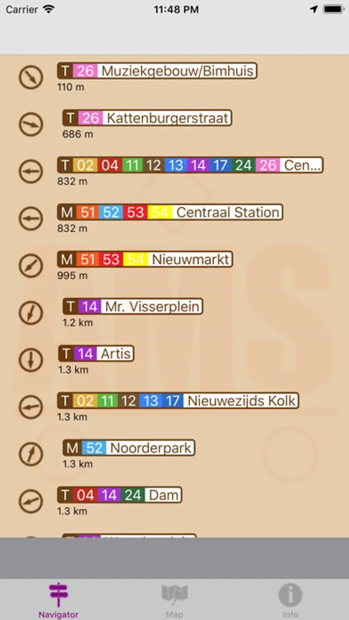 Find the nearest tram and metro stations of Amsterdam without an internet connection!