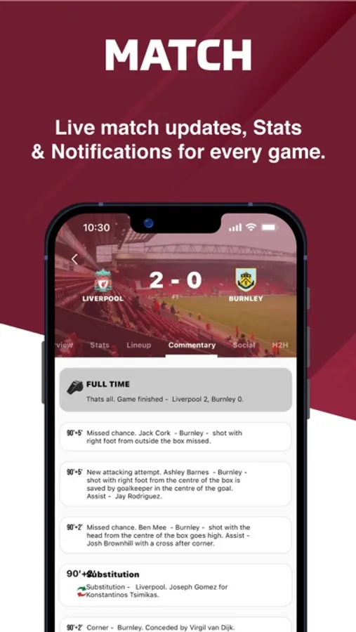 The number one football app for Burnley fans! Get your Burnley live scores, instant goal alerts, breaking news, transfer updates, match stats, match highlights, fixtures, results, and Burnley fan podcasts all in one place.