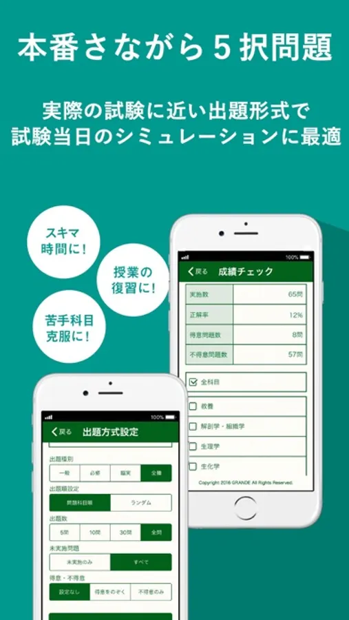 最新問題がアップされるから、1年生~6年生(国試受験)まで、ずっと使える国試対策アプリを是非ご利用ください。