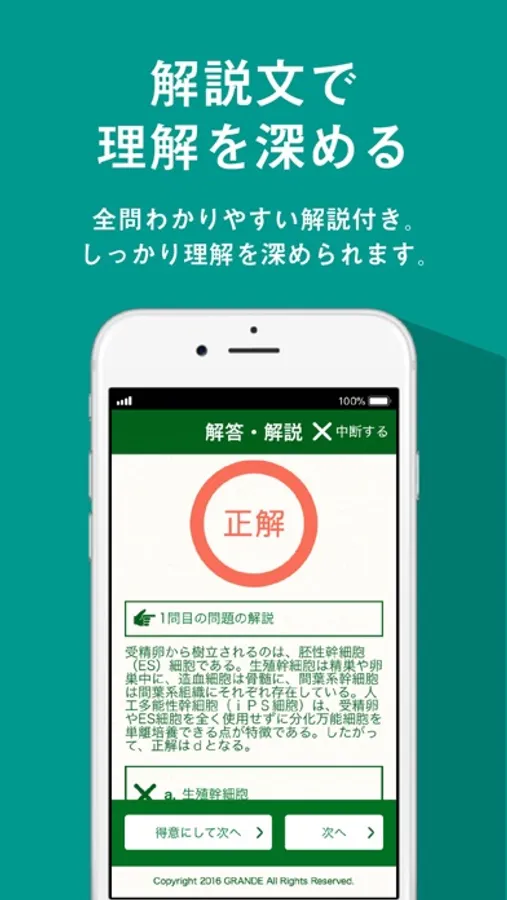正解した問題も、間違えてしまった問題もわかりやすい解説付きだから理解を深めることができます。