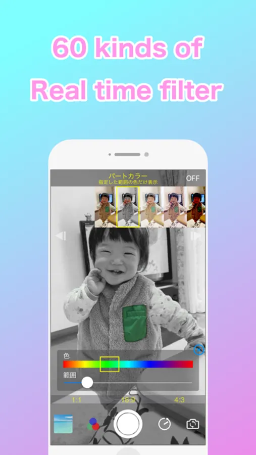 Aspect ratios of three types (1: 1, 4: 3, 16: 9) can be switched.