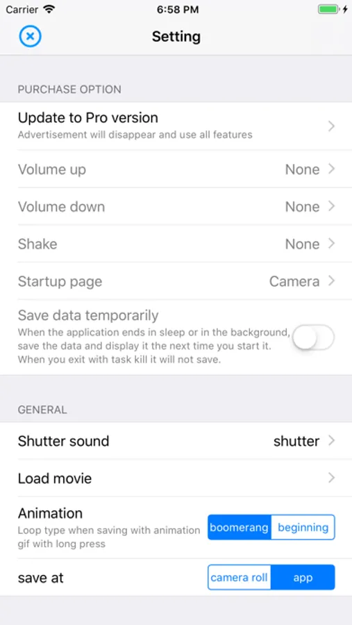 Assign a function to the volume button and shake gesture (shutter, favorite, pause, change brightness of the screen).