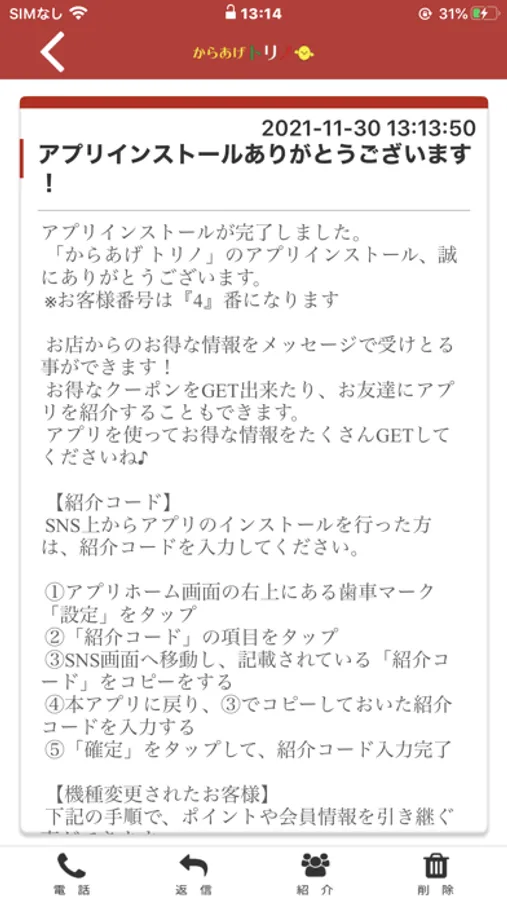 からあげのアプリをSNSを通じてお友達に紹介する事ができます。