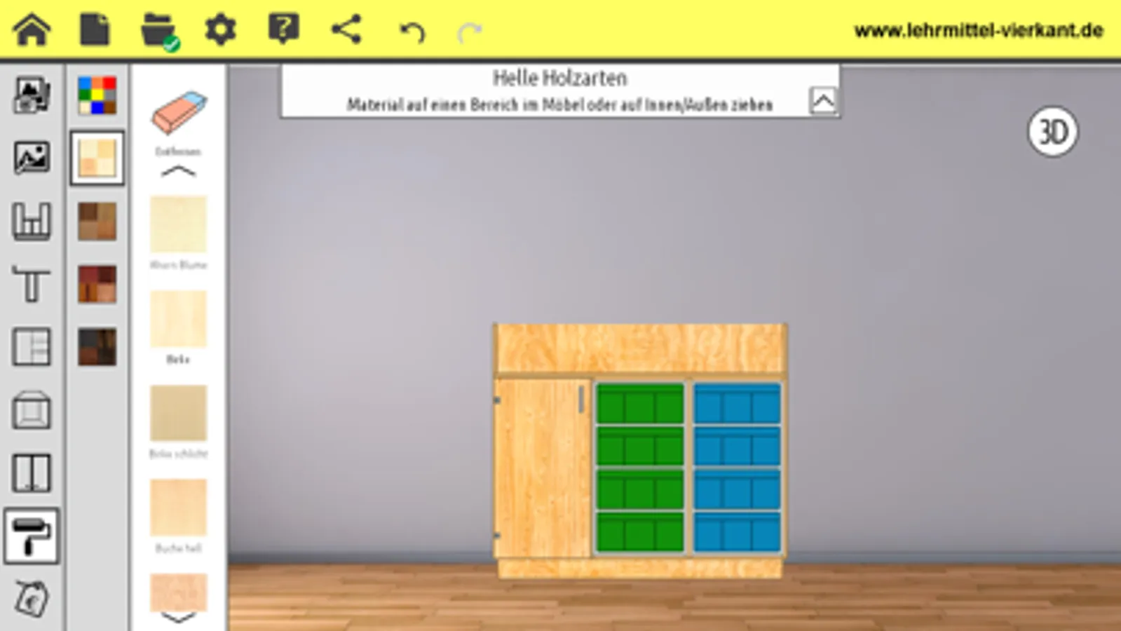 Mit der Lehrmittel Vierkant App kann jeder virtuell seinen Schrank oder eine ganze Schrankwand planen und anfragen. Bauen Sie virtuell ihren Schrank. Ideal ist dieser Raumplaner in der Schule, Kindergarten, Büro oder in der Betriebseinrichtung. Wir bieten Ihnen ihren Schrank unverbindlich an, beraten sie oder inspirieren Sie über unsere Website: www.lehrmittel-vierkant.de. Wir liefern den Büroschrank, Postfachschrank und Schließfachschrank sowie Möbel wie Wickelkommode, Kindergartenregal und viele Spezialschränke. Wir liefern ihnen den Holzkorpusschrank nach Wunsch im zusammengebauten Zustand an die Verwendungsstelle.