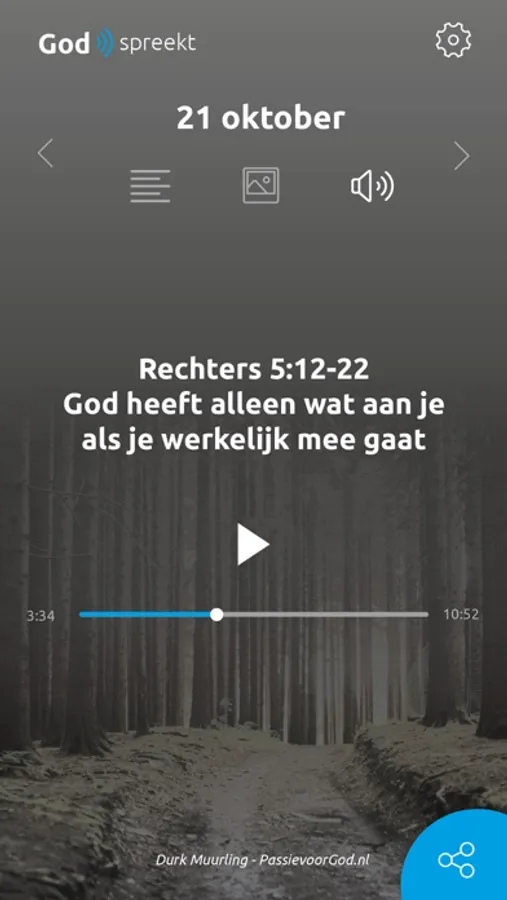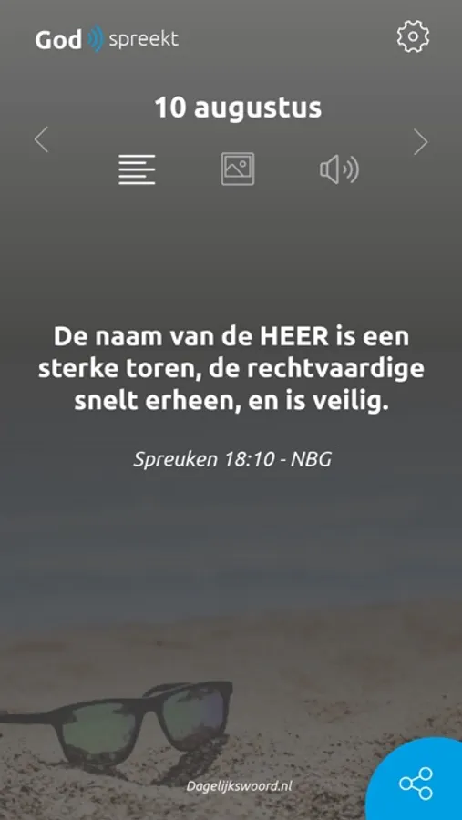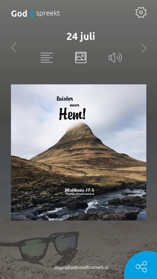 Deze app helpt je door middel van een paar korte momenten per dag te luisteren naar wat God tegen jou persoonlijk te zeggen heeft. Dit wordt iedere dag opnieuw ingevuld door diverse christelijke platforms. Denk aan een dagelijkse Bijbeltekst, bemoedigende afbeelding of een korte overdenking.