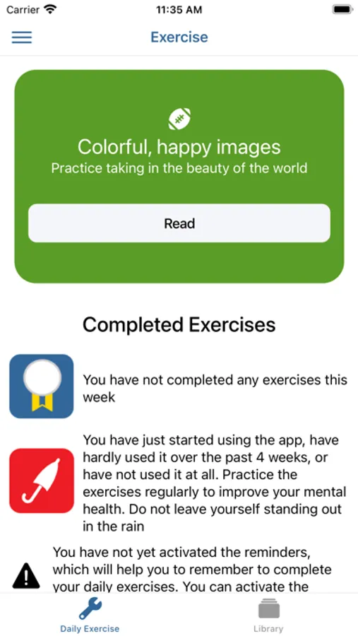 The self-help exercises used in the app are based on scientifically recognized techniques of cognitive behavior therapy as well as Metacognitive Training (MCT) that reduce emotional problems such as sadness and loneliness and also improve problems with impulse control. Each day, you will receive a new exercise. The exercises take just a few minutes and can easily be integrated into your everyday life. A push message will remind you to do the exercises regularly. You will also be able to write your own exercises or to modify existing exercises. So, you can turn the app into your personal “guardian angel.”