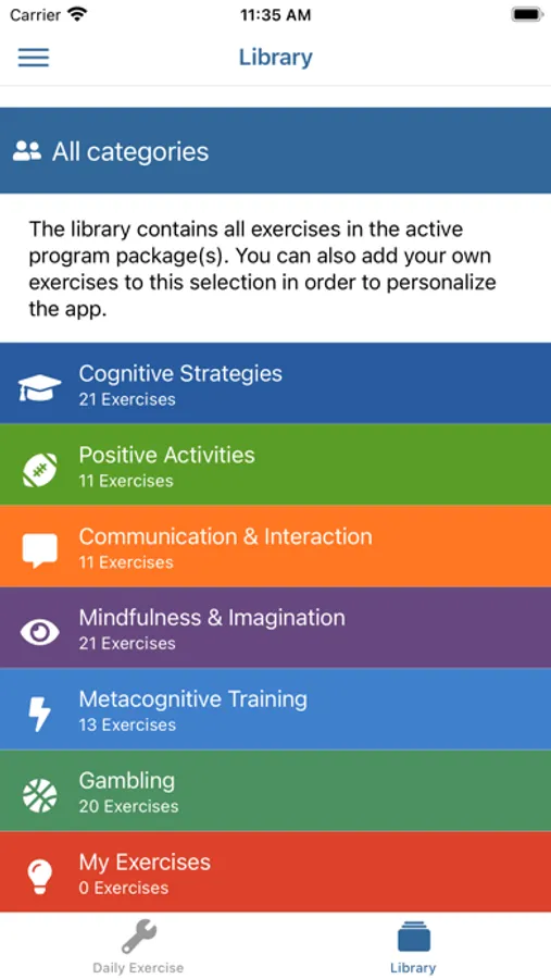 "MCT & More" (stands for Metacognitive Training and more) is a free self-help app for people with psychological problems. You can select different program packages depending on the issues you want to work on. For example, one of the program packages is designed for people with a gambling problem. Another program package is intended for people who have psychotic experiences (ideally, this program package should be used along with Metacognitive Training for Psychosis (MCT), available at no cost from www.uke.de/mct).