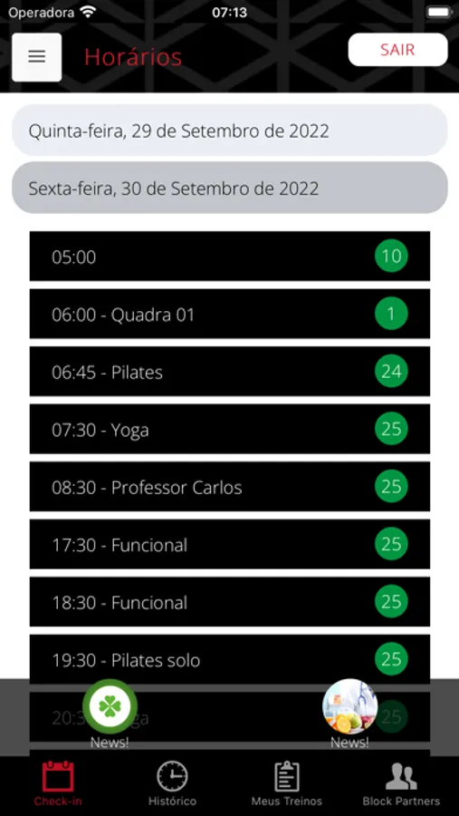 Aplicativo para o agendamento de horários dos alunos do Block Training