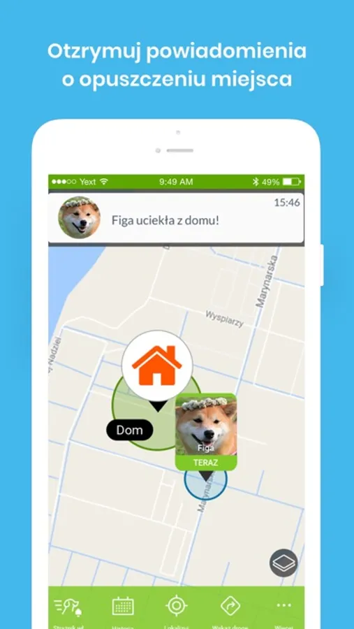 Definiuj obszary, w których Twój pupil przebywa najczęściej i otrzymuj powiadomienia jeśli je opuści bez Twojej wiedzy. Przykładowe strefy dla psa lub kota: dom, ogród, działka.