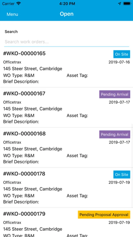 - Manage open work orders at a glance