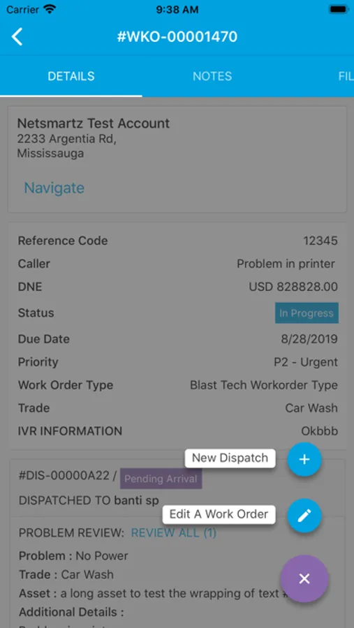 - Dispatch work orders to Service Providers