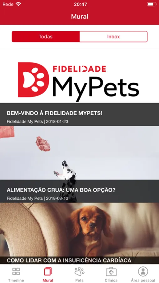 - Um mural onde pode consultar informações relevantes sobre cuidado e acompanhamento dos seus animais.