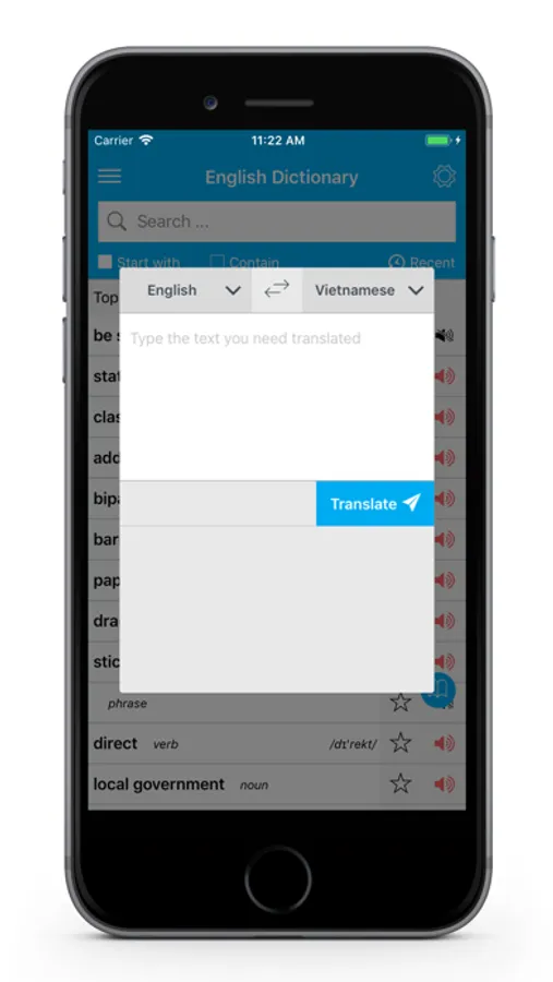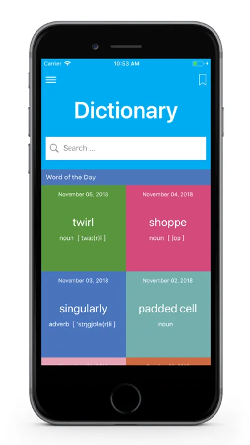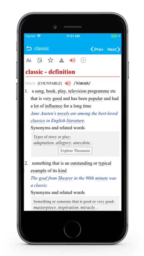 * Short and clear definitions, with menus in longer entries to help find the meaning quickly
