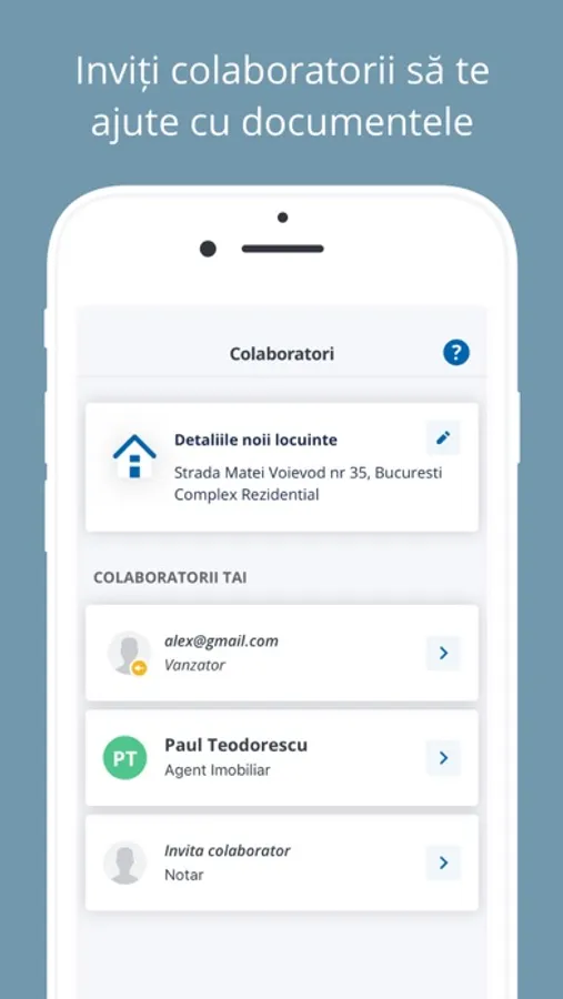 • Colaboratorii (notar, vânzător, agent imobiliar) încarcă documente la invitația utilizatorului.