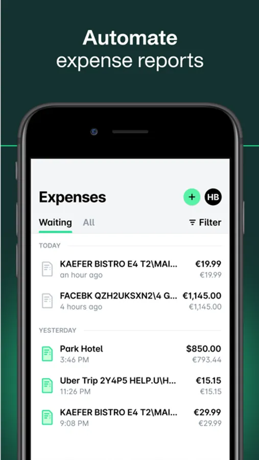 * Automated inbox - digital invoices are automatically matched with card transactions.