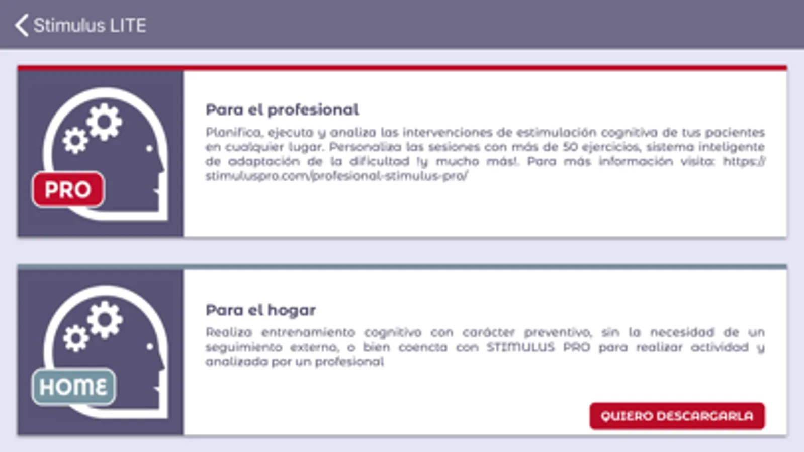 App de entrenamiento cognitivo basada en nuestras herramientas profesionales de estimulación cognitiva Stimulus Home y Stimulus Pro.