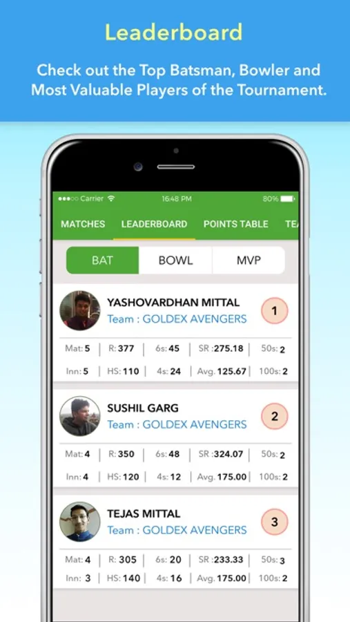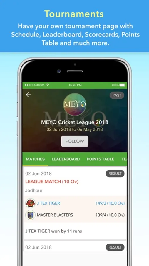 You can use CricSync Cricket Scoring App to record and maintain your college cricket tournament, corporate cricket leagues, school cricket tournaments, and any other cricket match or tournament.