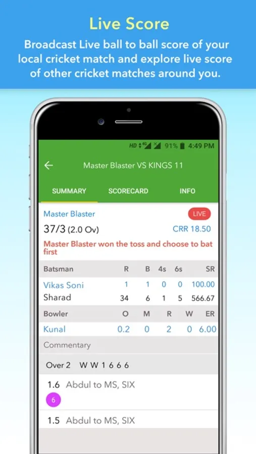 Score your Local Cricket Matches or Tournaments LIVE ball to ball on CricSync just like International Matches.
