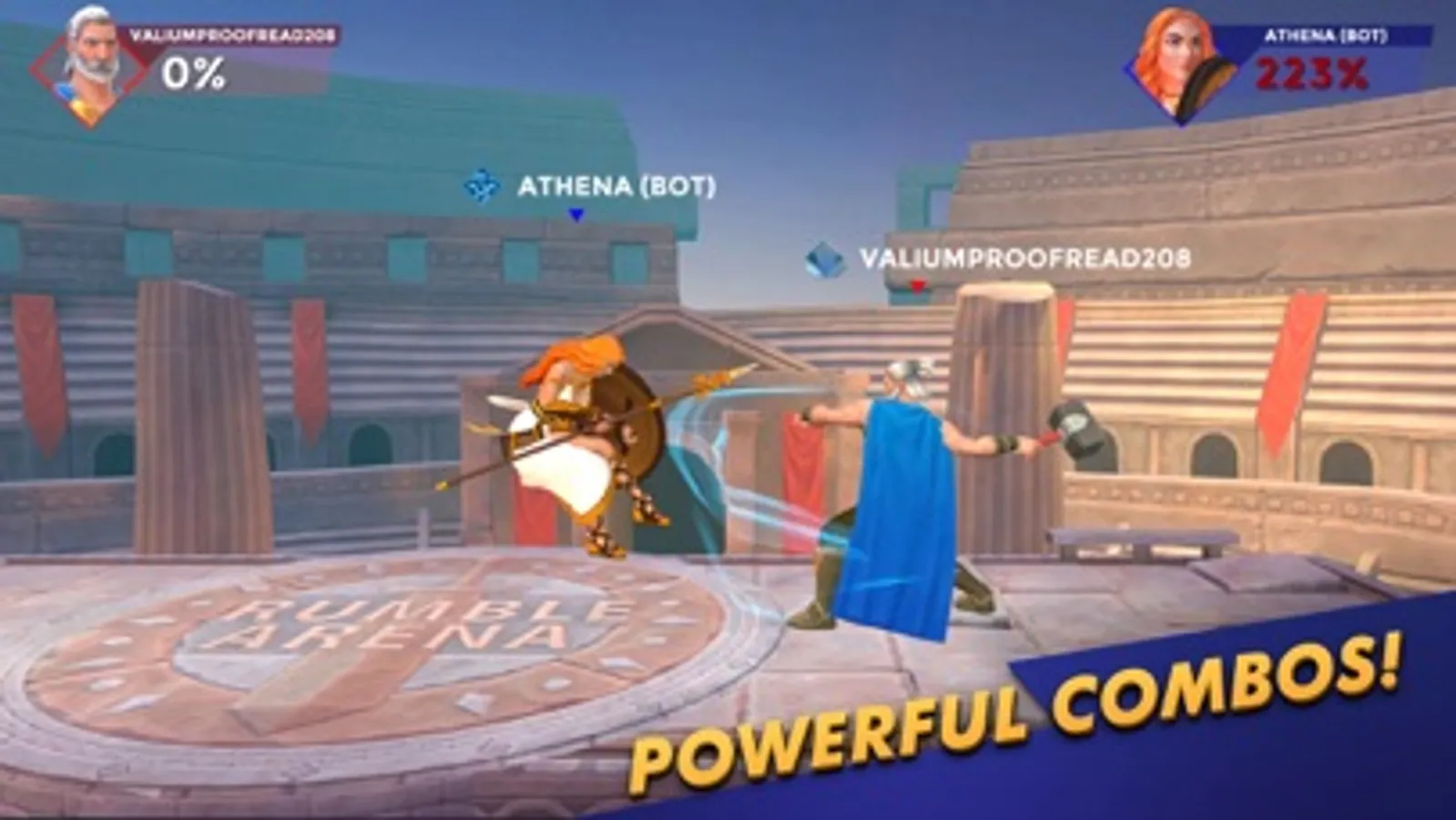 Rumble Arena is a platform fighter. Jump into action with your favorite Legend or God and battle across the universe! 10 characters with unique moves and fighting style to choose from. Challenge your friends, offline or online!
