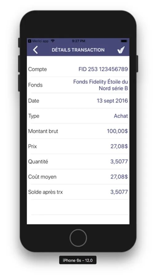 Avec l'application Merici app, il est facile et rapide de consulter quotidiennement vos transactions et votre portefeuille afin que vous puissiez continuer votre journée et poursuivre votre vie. Propulsé par VieFUND, l'application mobile est sûre et sécurisée.
