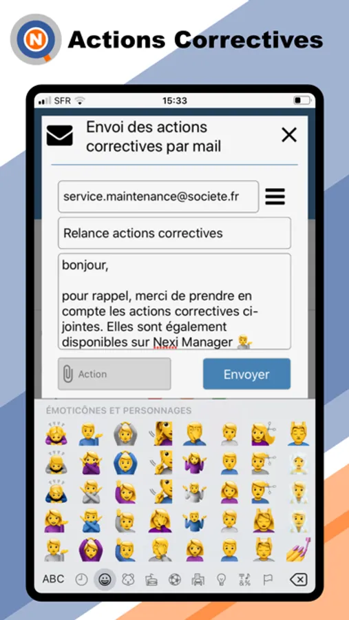 - Envoi de vos actions correctives par mail