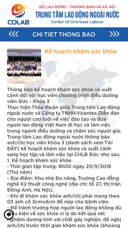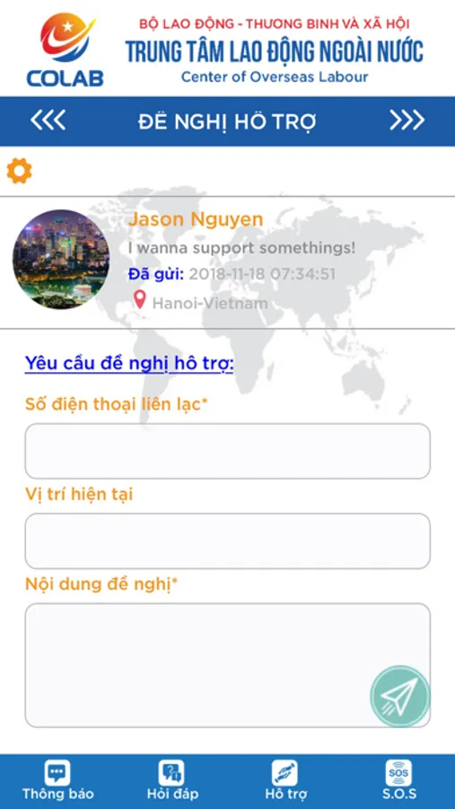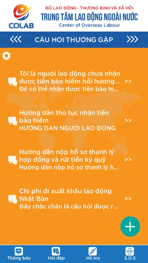 Ứng dụng kết nối với người lao động Việt Nam đang làm việc ở nước ngoài (COLAB SOS) là công cụ thiết yếu để người lao động, thực tập sinh và điều dưỡng viên đang làm việc tại nước ngoài theo các chương trình Trung tâm đang thực hiện khi gặp nguy hiểm hoặc các sự số phát sinh có thể liên lạc, đề nghị sự trợ giúp khẩn cấp từ các cơ quan chức năng.