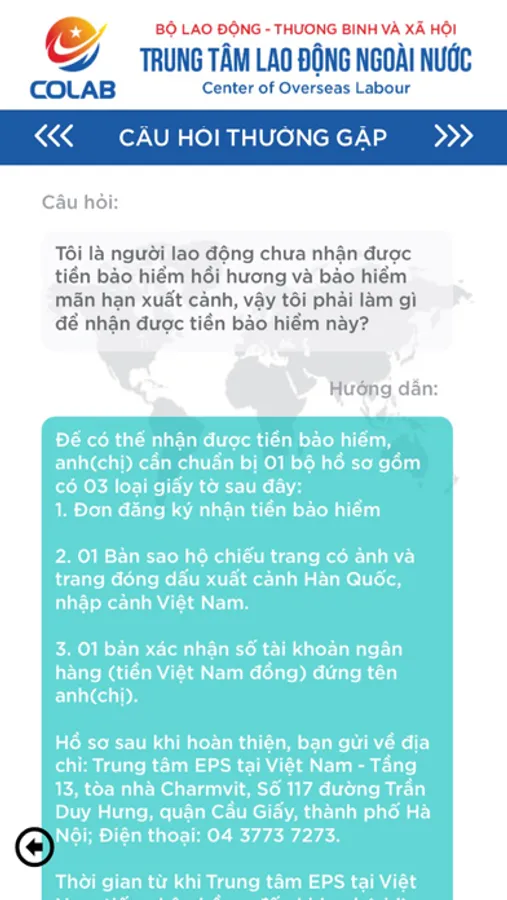 Ứng dụng giúp giải đáp những thắc mắc cơ bản cho người lao động về các thủ tục hành chính tại nước sở tại và Việt Nam.